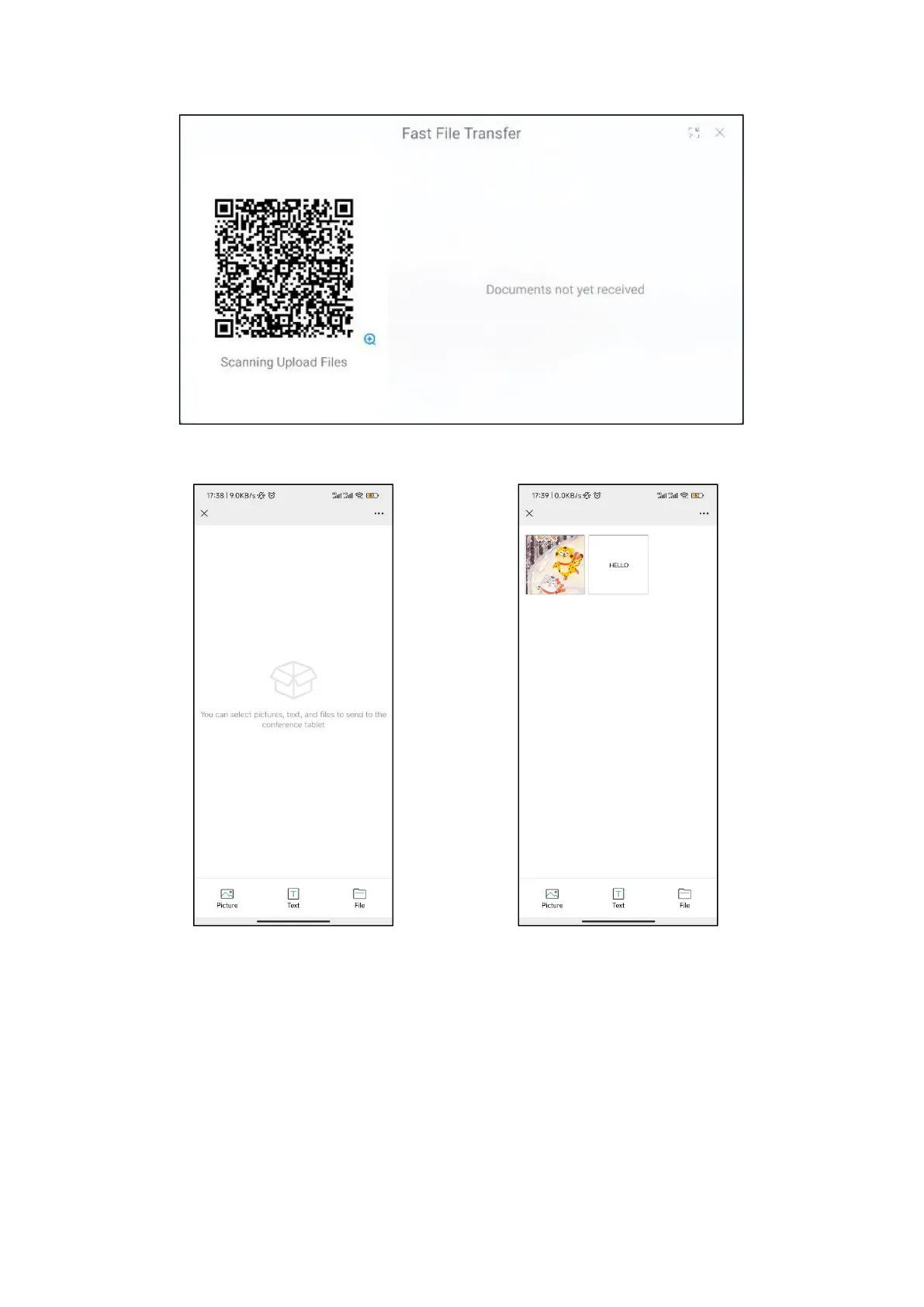 1. Upload pictures, texts and files on the mobile terminal after scanning codes.
