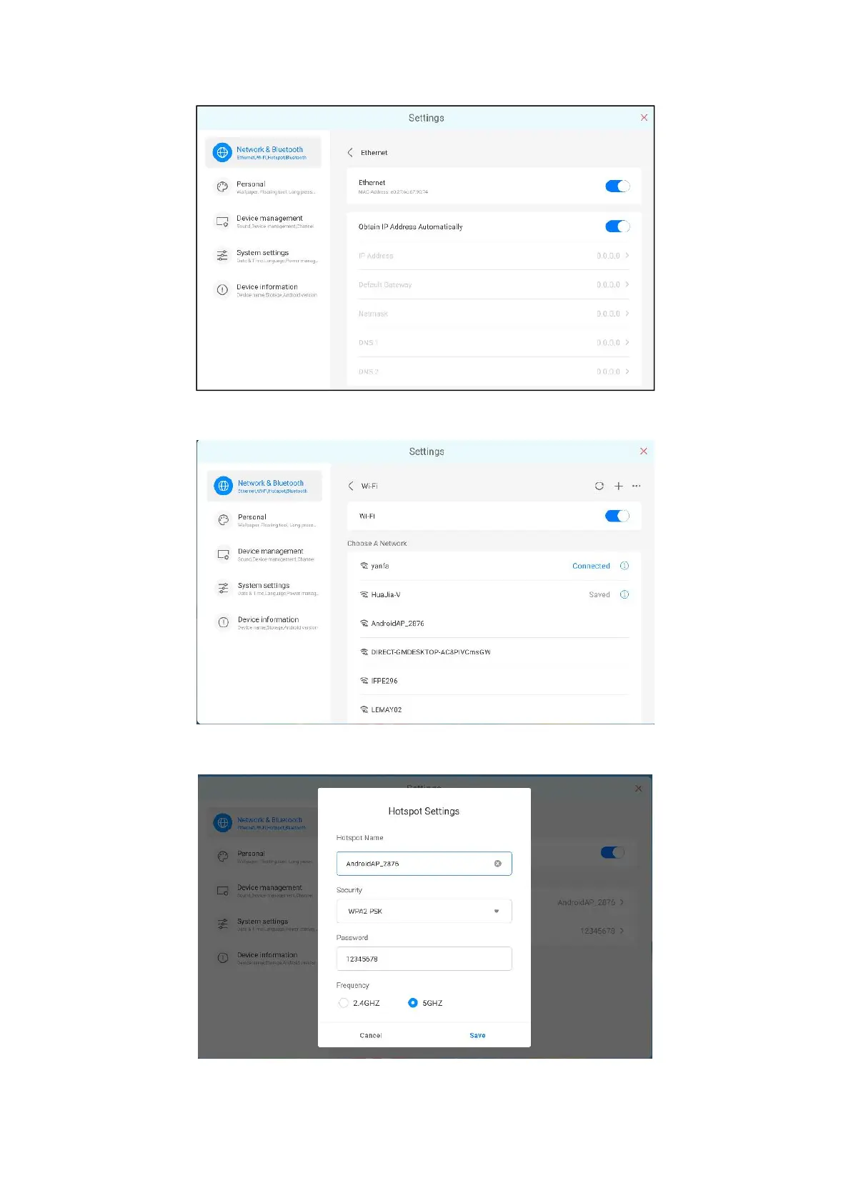 Hotspot: the hotspot supports two frequency bands: 2.4GHz and 5GHz.