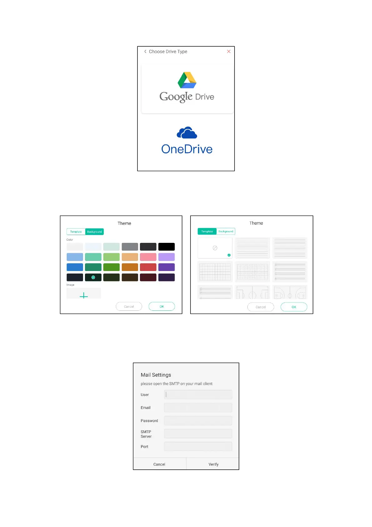 (7) Theme: Select whiteboard background and template. You can customize