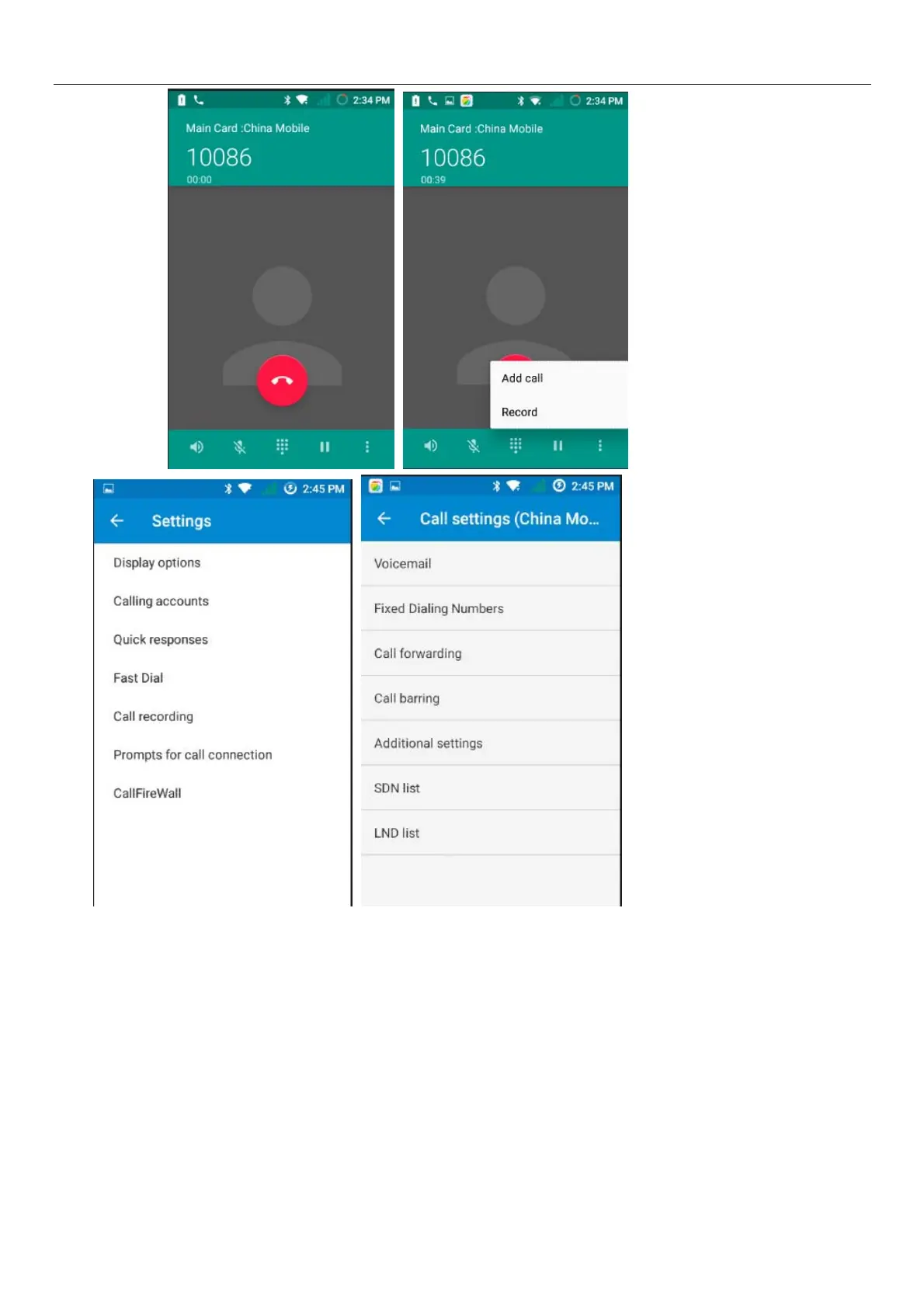 1)settings>Calling accounts >Call forwarding, set other functions of the call in the dialing settings,for