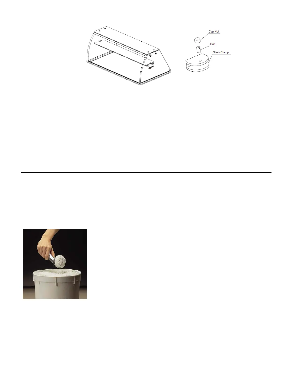 • The dipping cabinet with the glass canopy attached should sit without being moved for 24 hours to let the