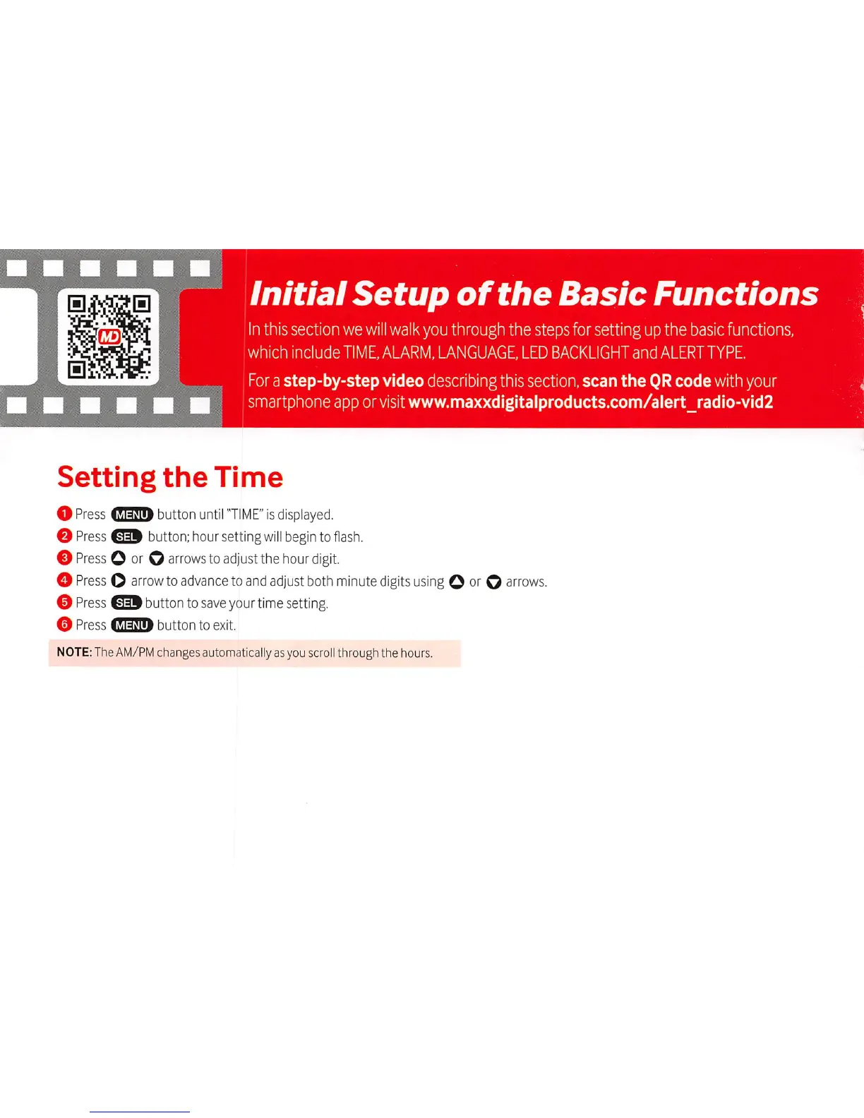 Maxx Digital MX-CR01NW - Initial Setup of the Basic Functions; Setting the Time