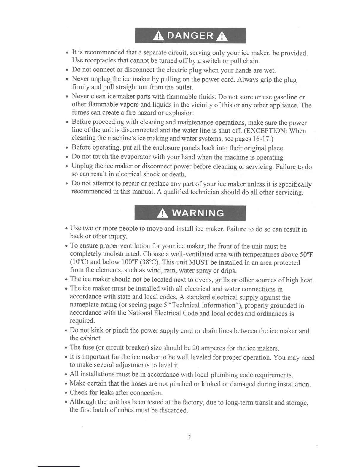 Maxx Ice MIM1000 - Operational Safety Warnings