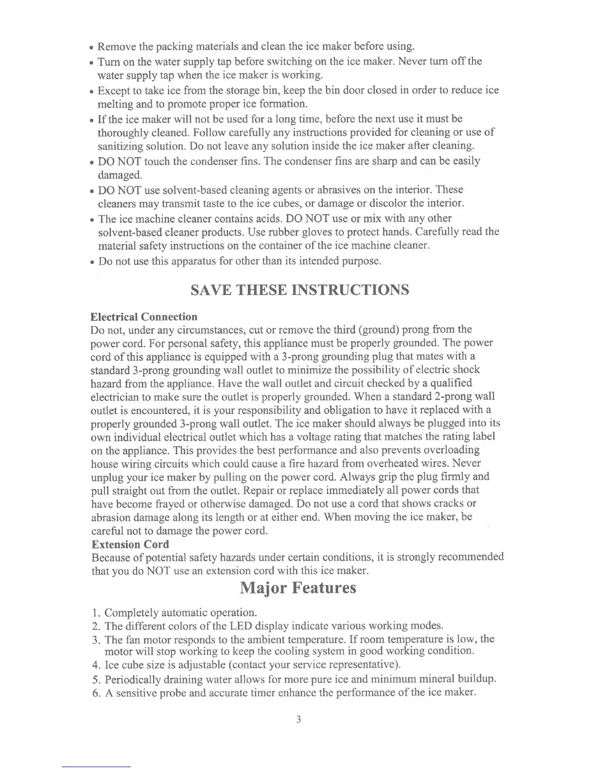 Maxx Ice MIM1000 - Electrical Connection Safety; Usage and Cleaning Safety
