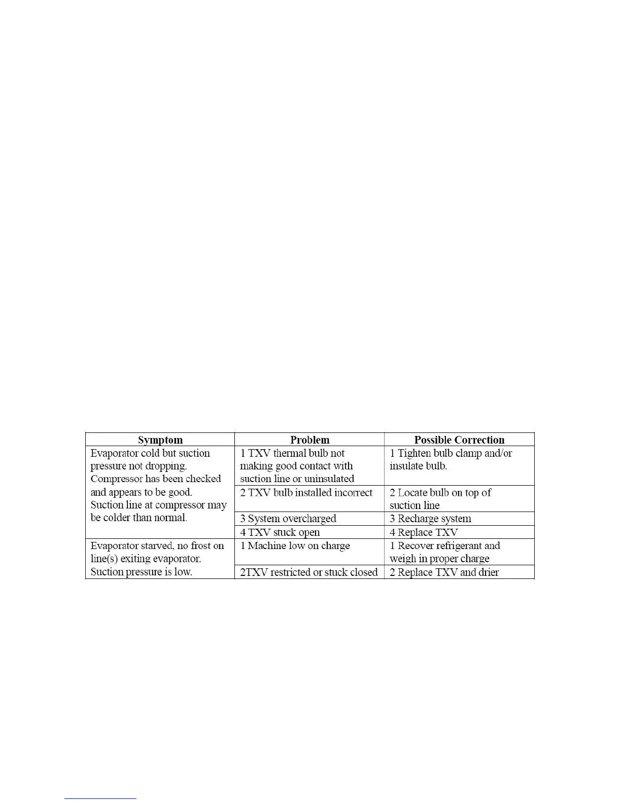 problem, refer to the troubleshooting section. If the TXV sticks open or if the thermal bulb is not
