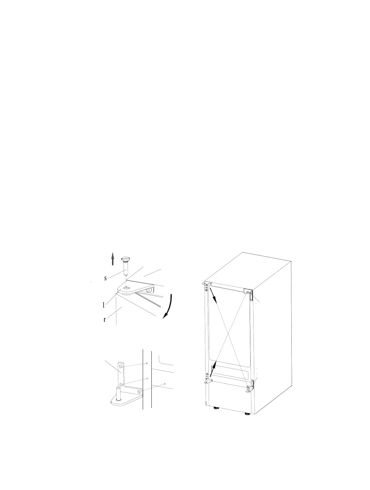 4. Alignez la porte sur la charnière inférieure 1 et remplacer l'axe sur charnière 2. Serrez