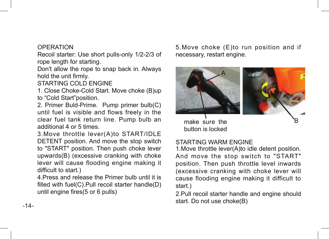Recoil starter: Use short pulls-only 1/2-2/3 of