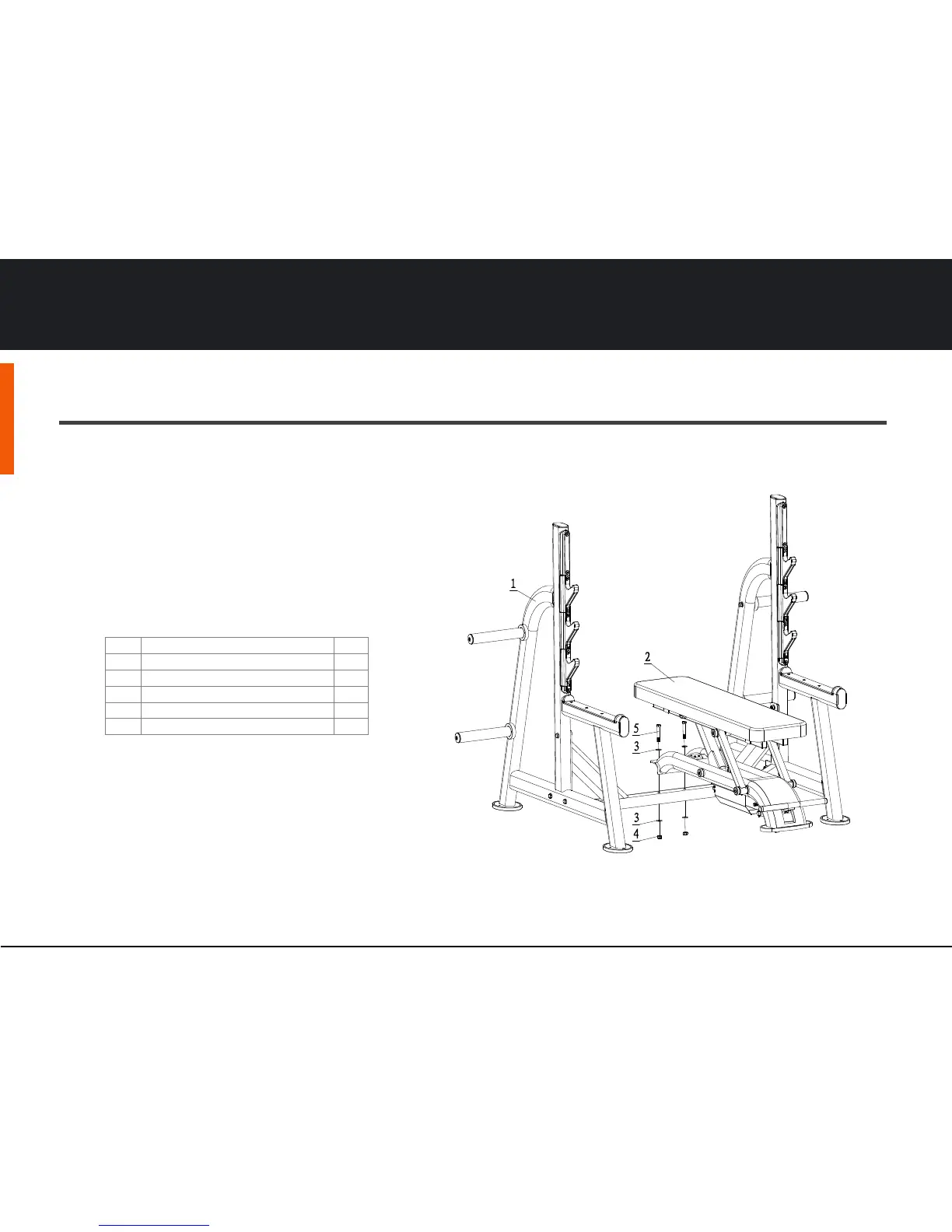 Assemble Main Frame (1) & Bench(2) using Flat Washer Ф13.5*Ф24*2.5(3), Nut M12(4) and Hex Bolt