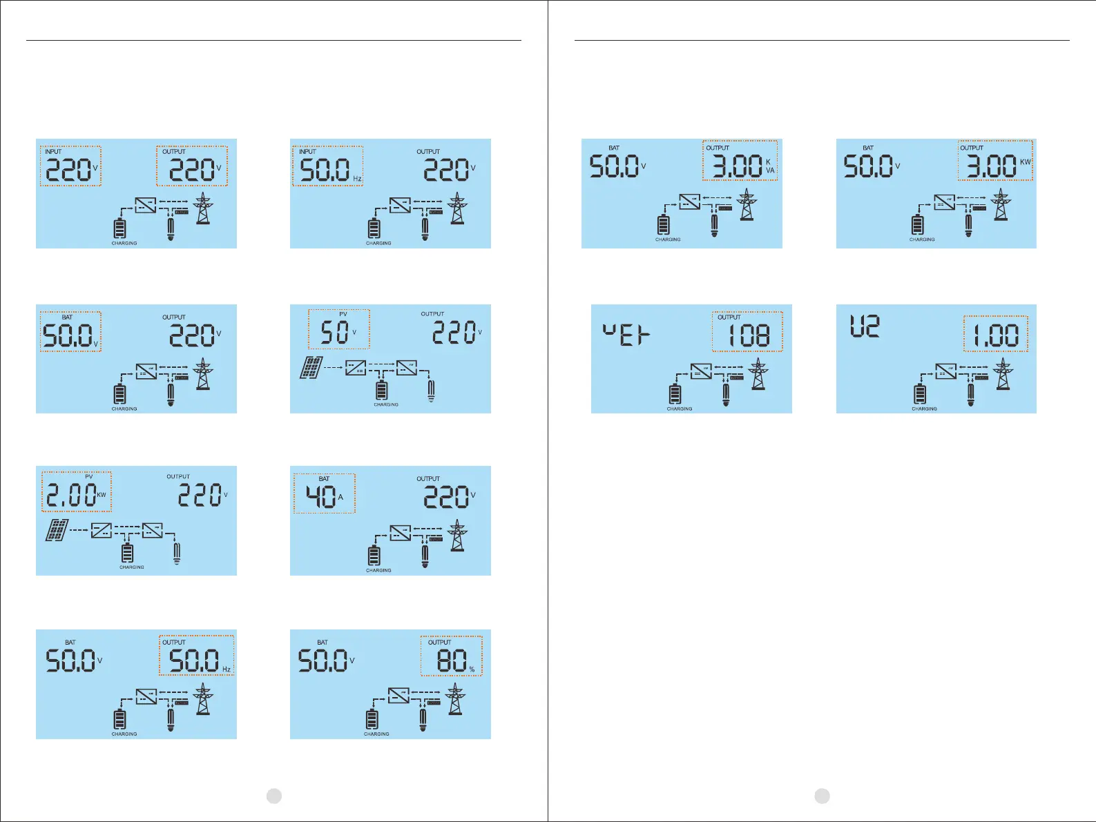 is switched as below order: input voltage/frequency, battery voltage, charging current, output