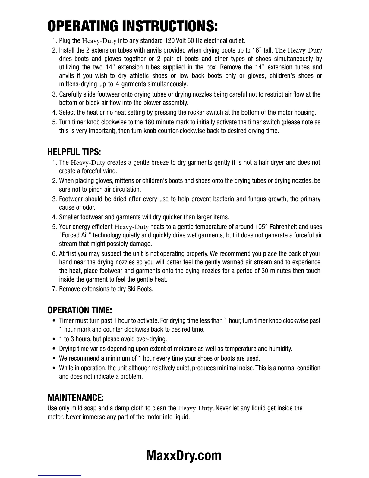 Install the 2 extension tubes with anvils provided when drying boots up to 16” tall. The Heavy-Duty