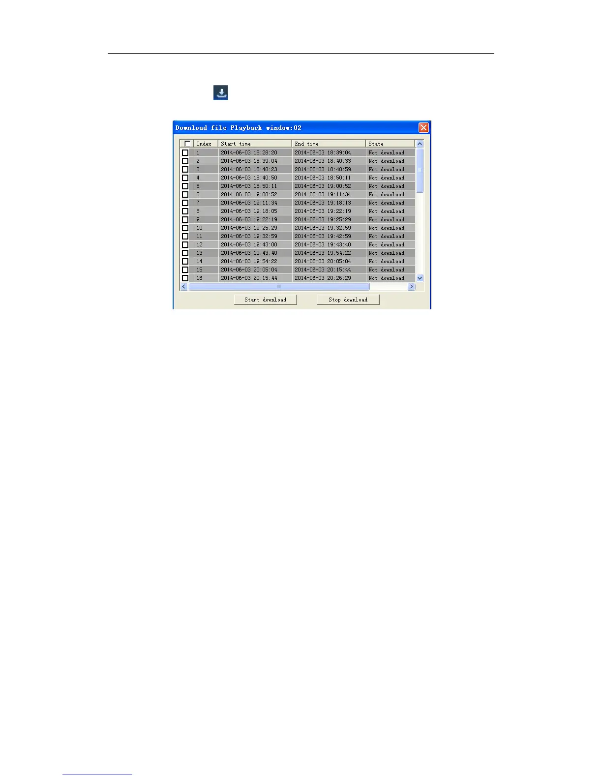Click download icon “ ” on the control bar to display all the matched record file