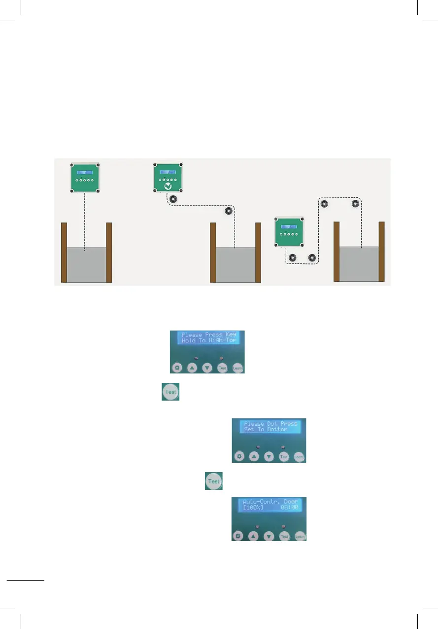 maintenez le bouton test enfoncé et ne le relâchez pas, attendez que la porte