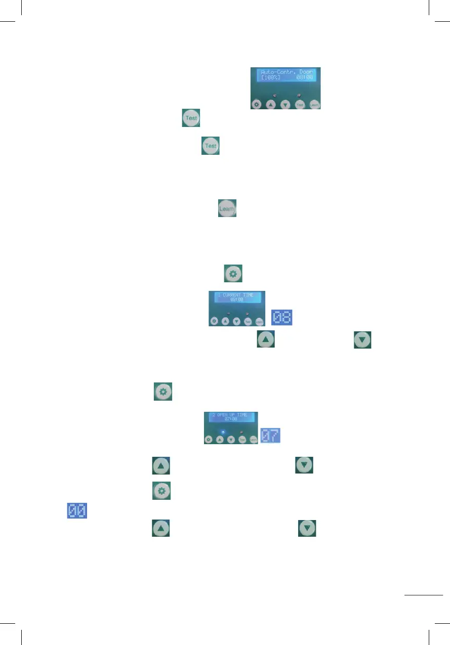 1.After displaying as shown (Auto-Contr.Door(100%)), Press and hold the test button