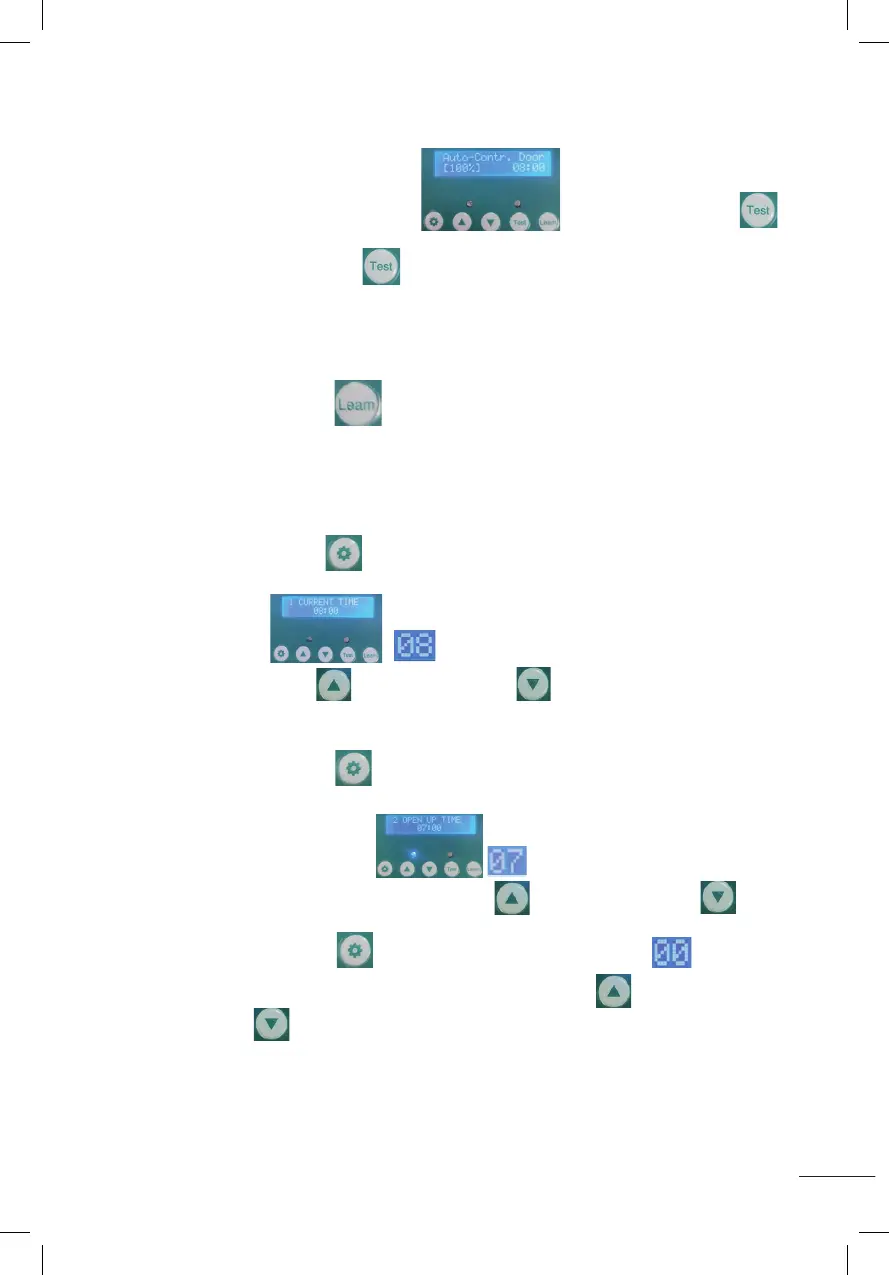 1.After displaying as shown (Auto-Contr.Door(100%)), Press and hold the test button