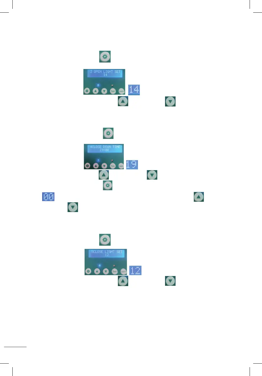 (CLOSE LIGHT SET 12), it will start to flash as shown in the figure ,press the increase button or the
