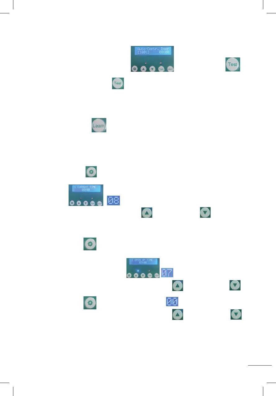 1.After displaying as shown (Auto-Contr.Door(100%)), Press and hold the test button