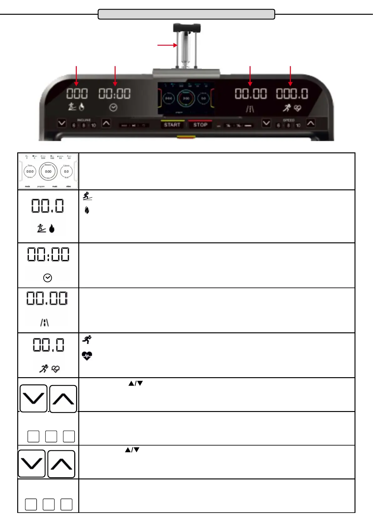 Incline/Calories Time Distance Speed/Pulse