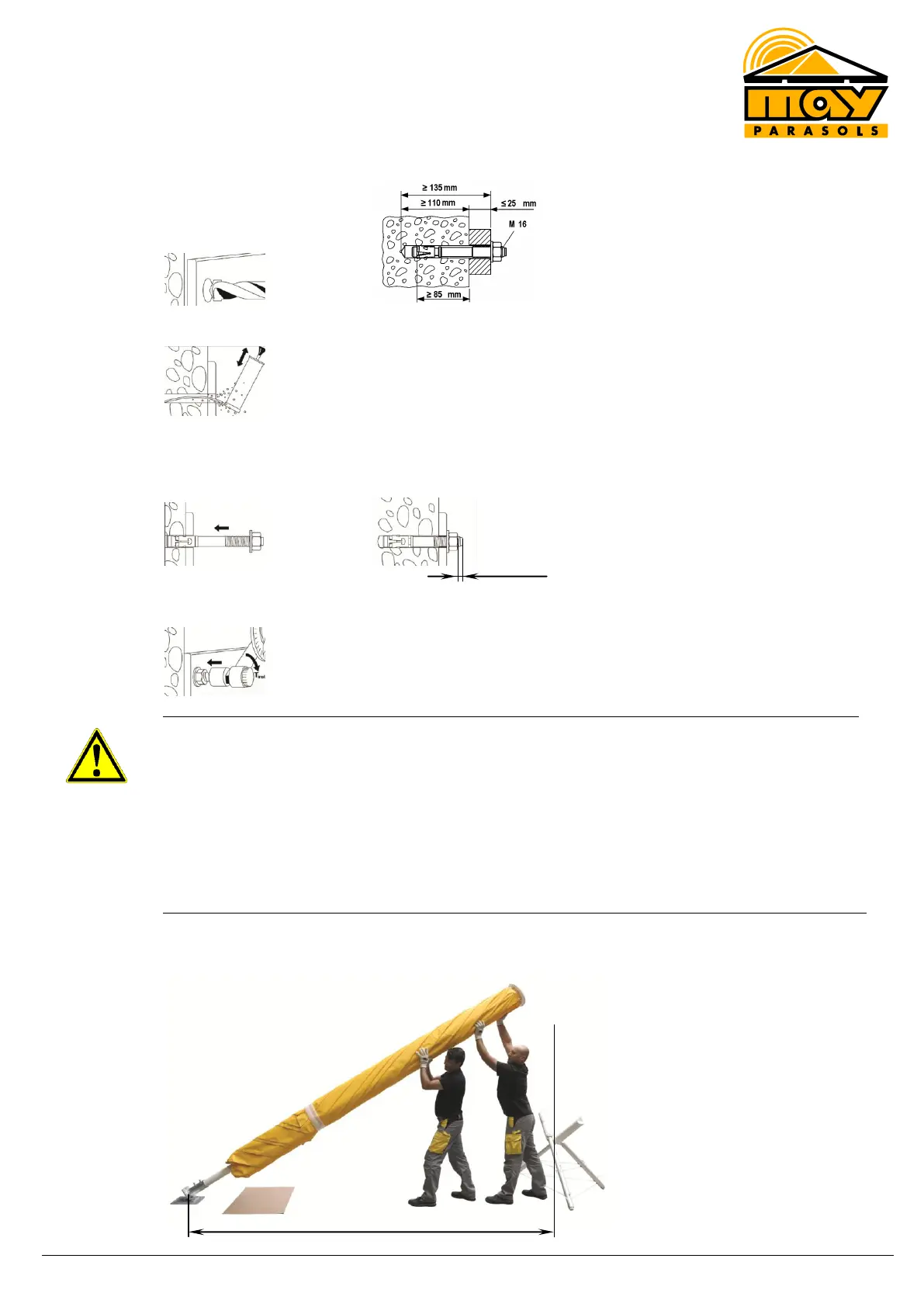 sufficient space to erect and dismount your sunshade.