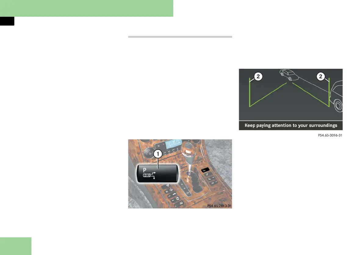 왘 Press parallel parking button 1 on