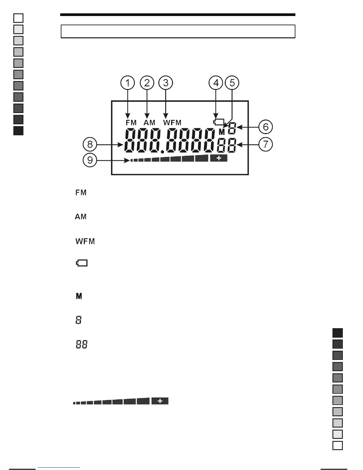 Indicates the wide “FM” mode for broadcasting radio has been selected.