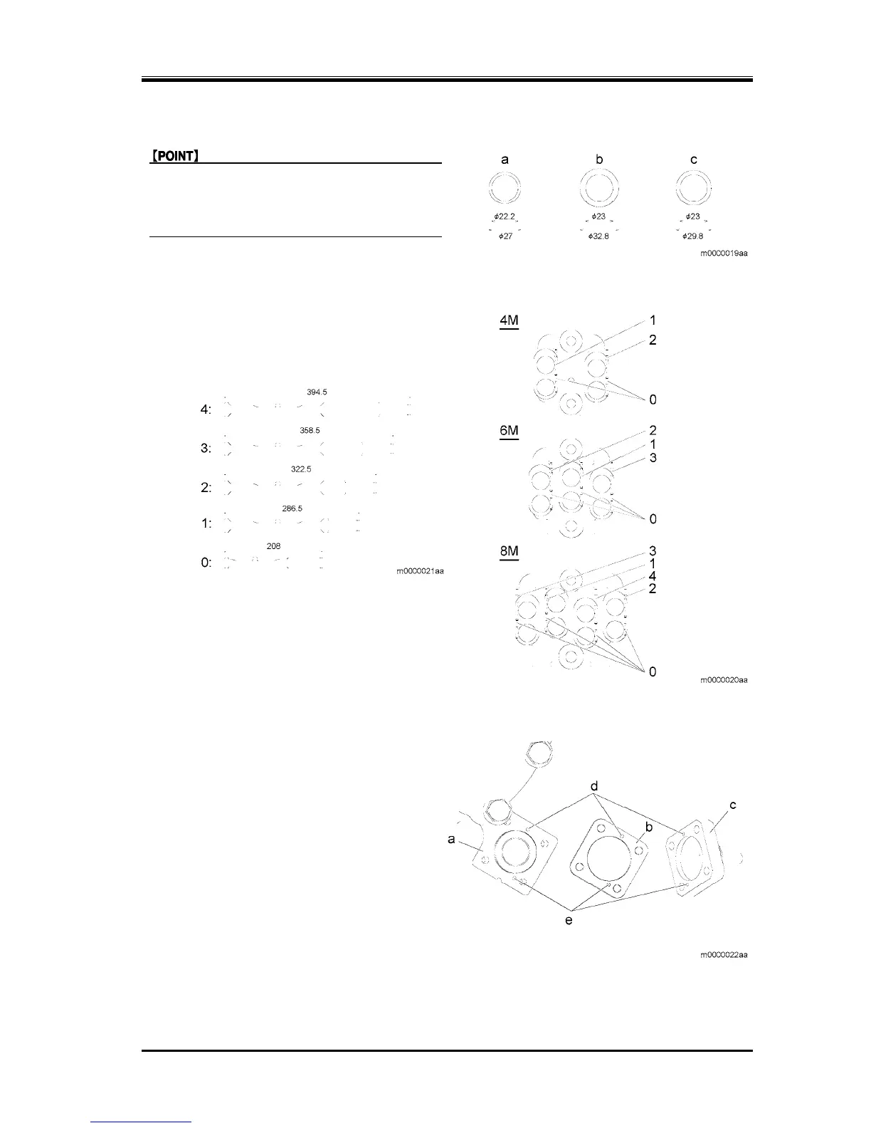 1. Align the gasket (b) and drain holes (d)(e) with