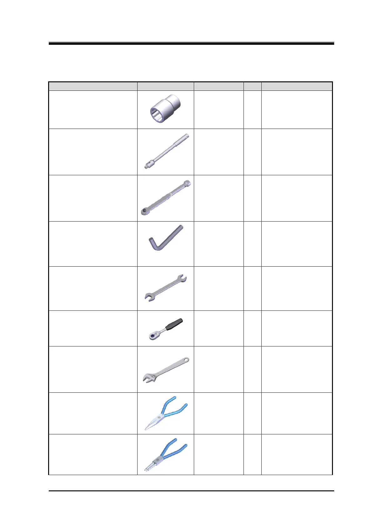 Tool name Simplified diagram Specification/Size Qty. Remarks