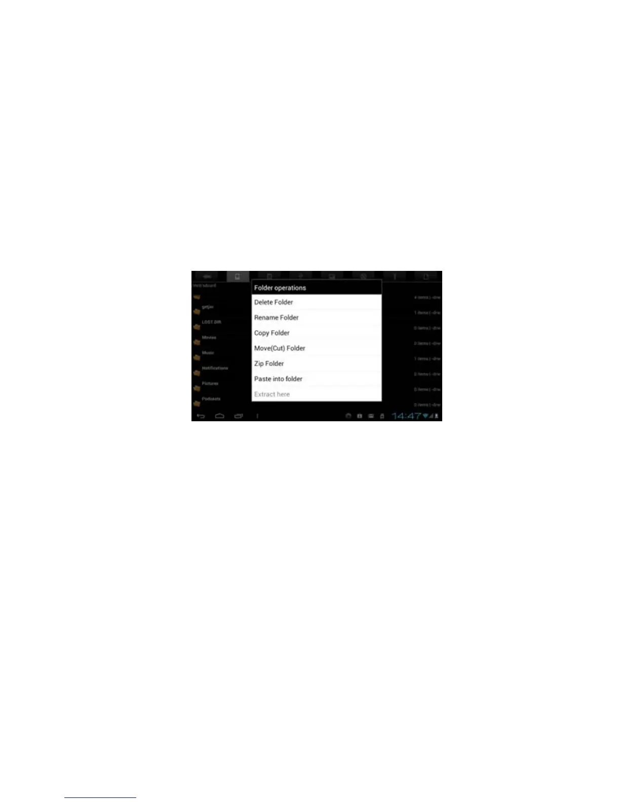 6. Touch & hold a folder in the internal memory screen to display a file operation command window.