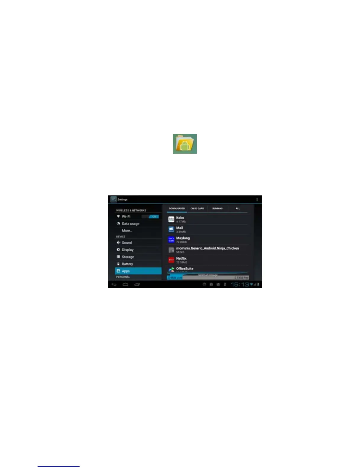 To uninstall an application from your tablet, touch Settings icon from Home Screen to display the Settings