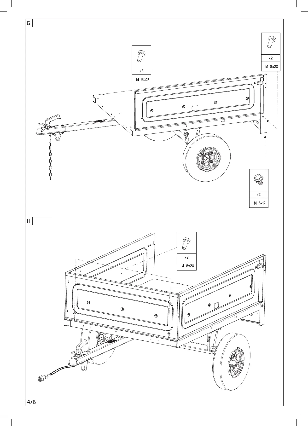 MayPole Erde MP6812 - Trailer Assembly Step G: Side Panel Attachment; Intermediate Tightening Caution; Trailer Assembly Step H: Rear Panel Attachment