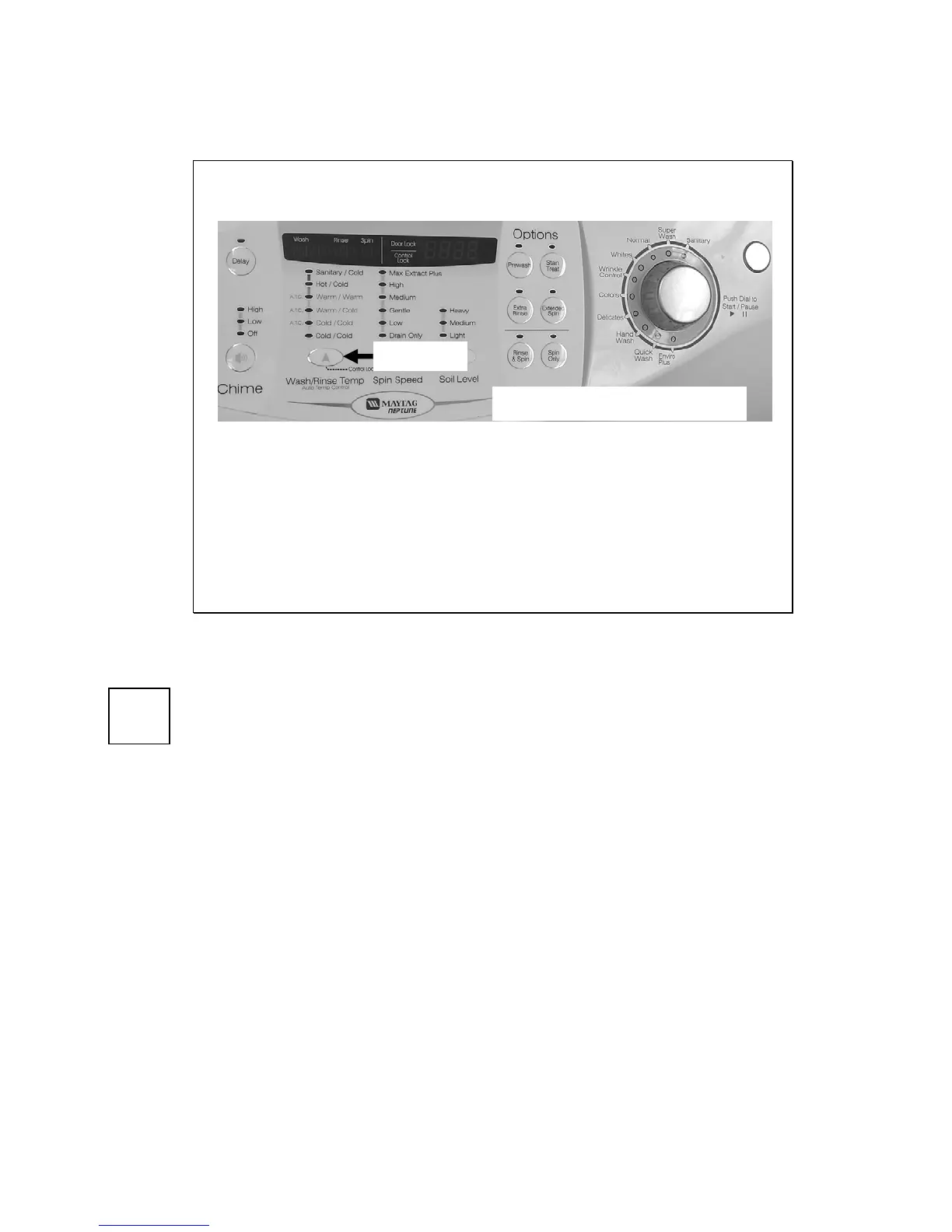 position, check the water level, if over reset level, drain first before entering the spin function); at