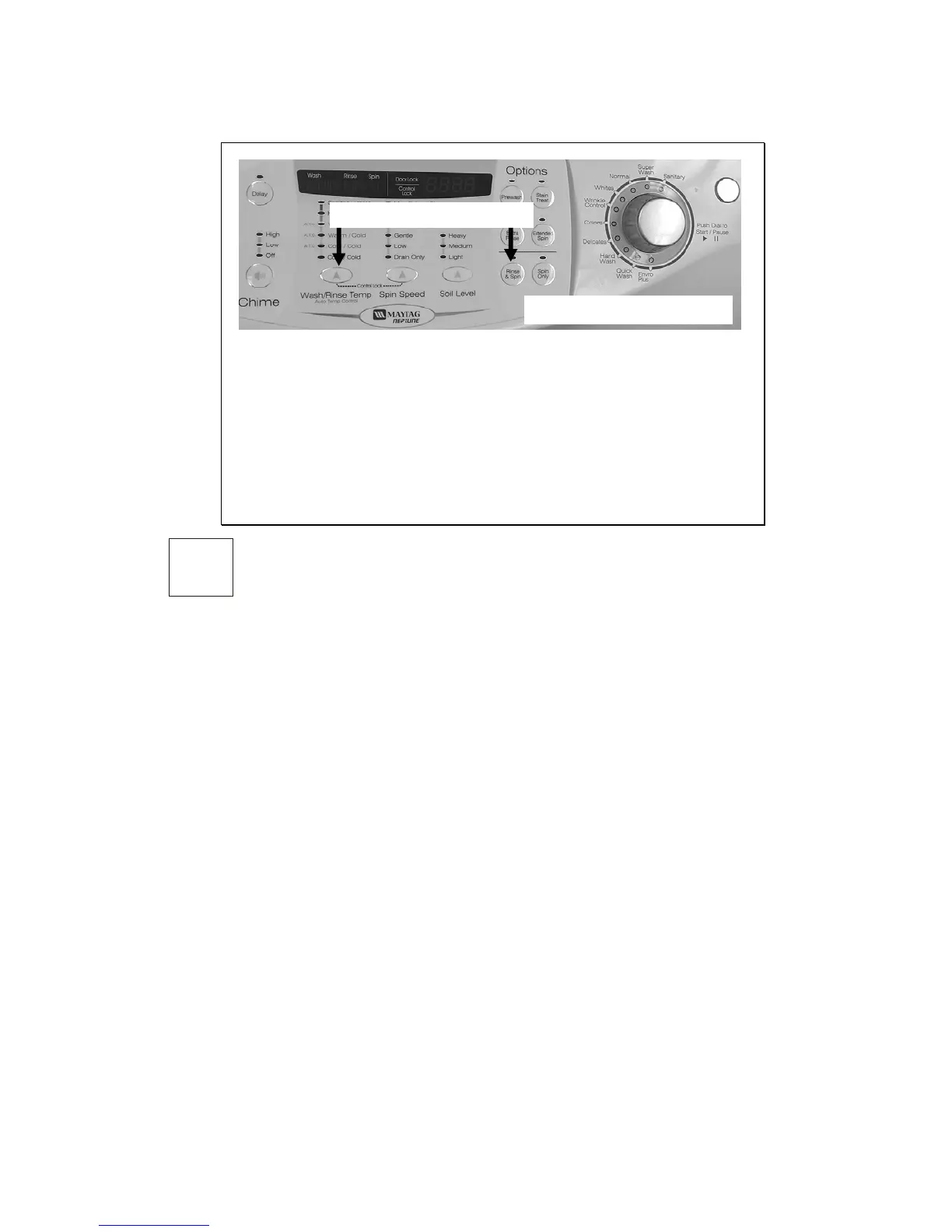 Spin Speed key will advance to the next step. Pressing the Rinse&Spin and Spin Only keys will