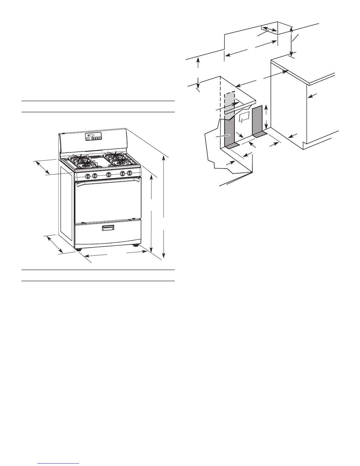 L. 2" (5.1 cm) min. clearance from both sides of range to side wall