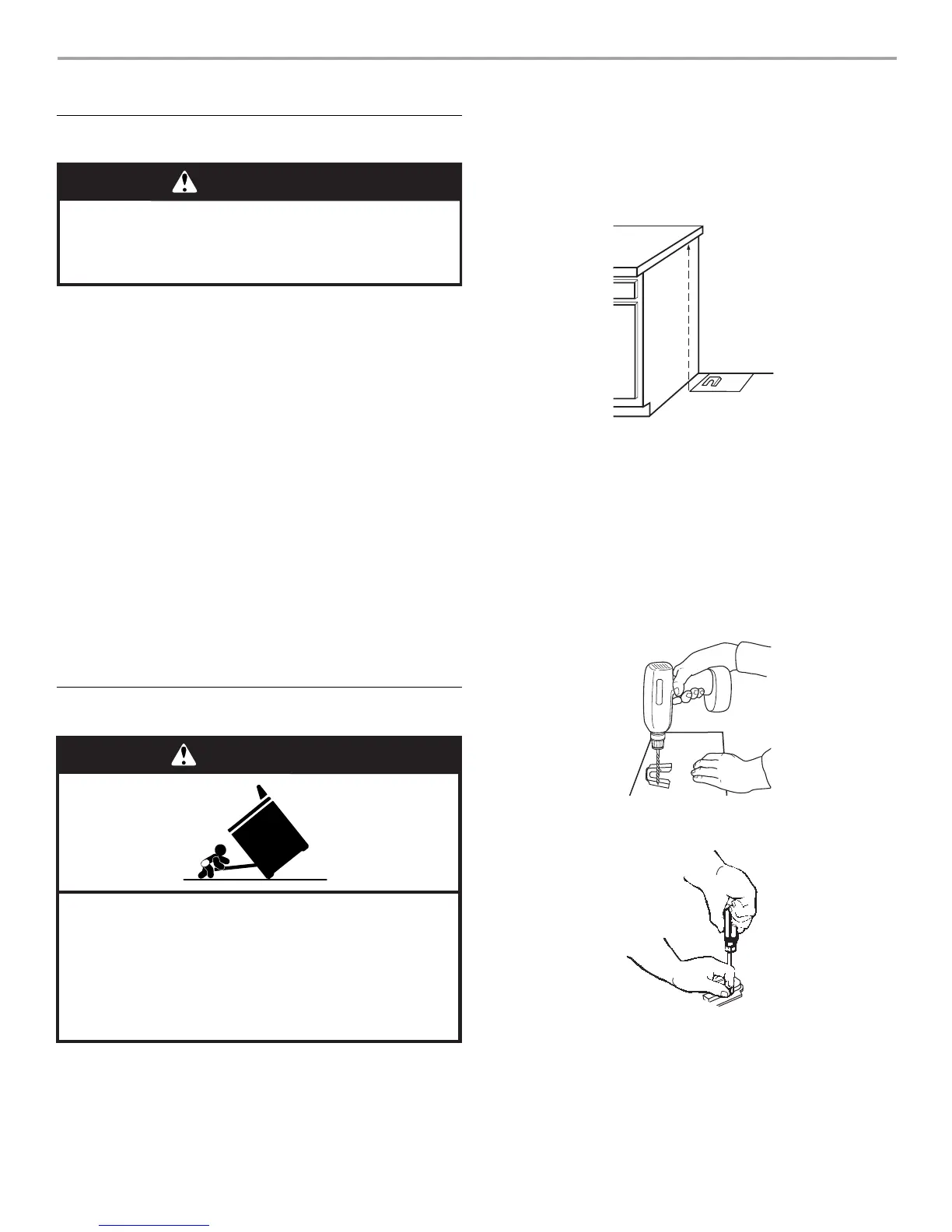 of ³⁄₁₆" (0.5 cm) is needed to engage the anti-tip bracket.