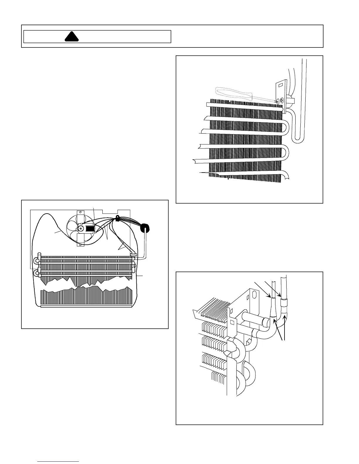 14.Remove screws securing freezer coil to coil mounting