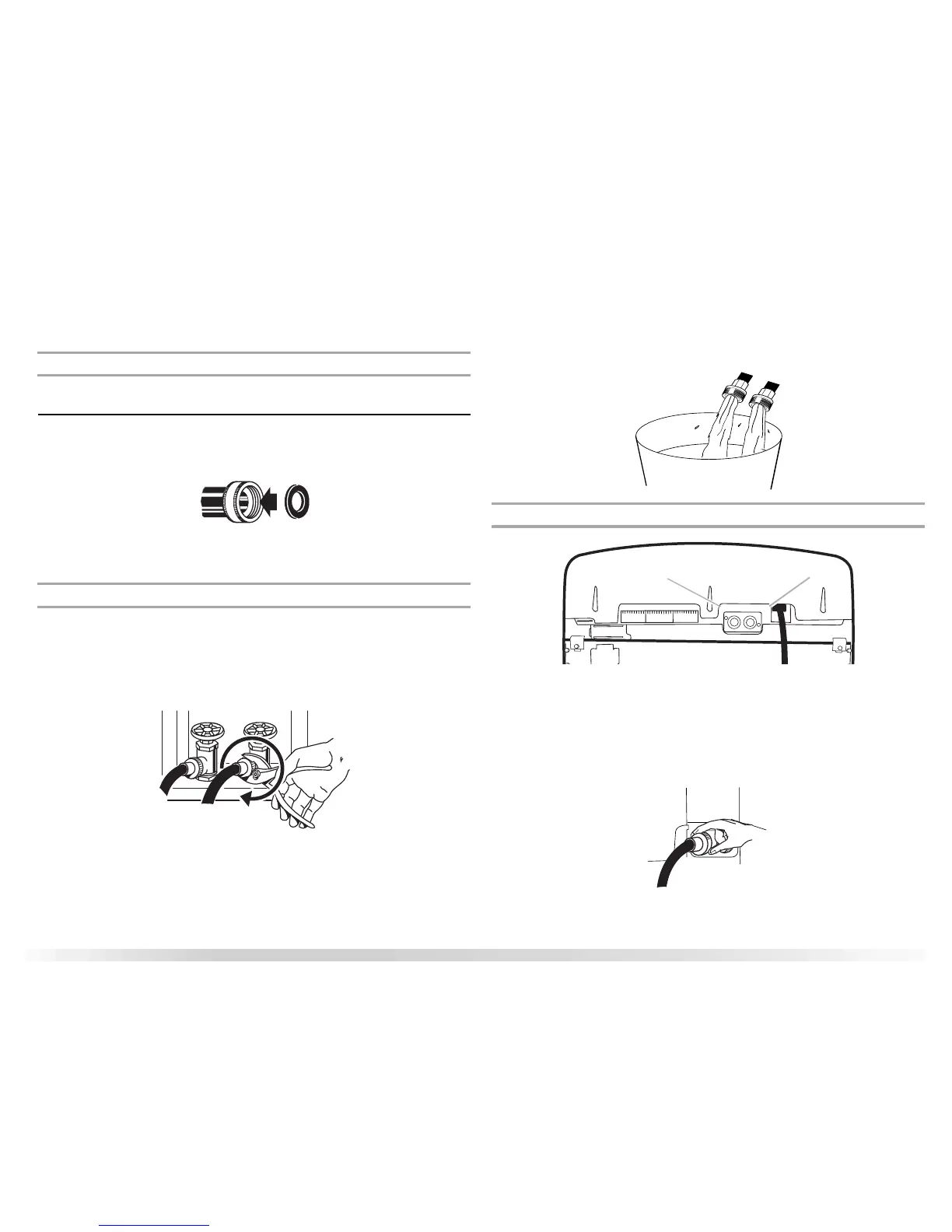 1. Afiance la manguera de agua caliente a la válvula de entrada con el rótulo de “hot”
