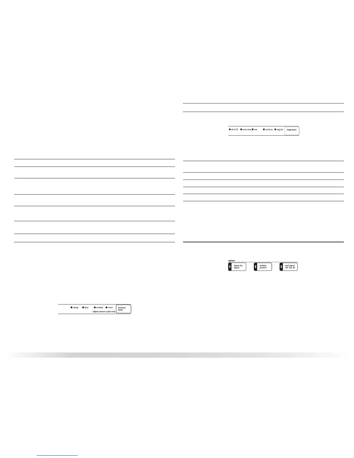 Use the DRYNESS LEVEL button to select dryness levels for the Sensor Cycles. Press DRYNESS