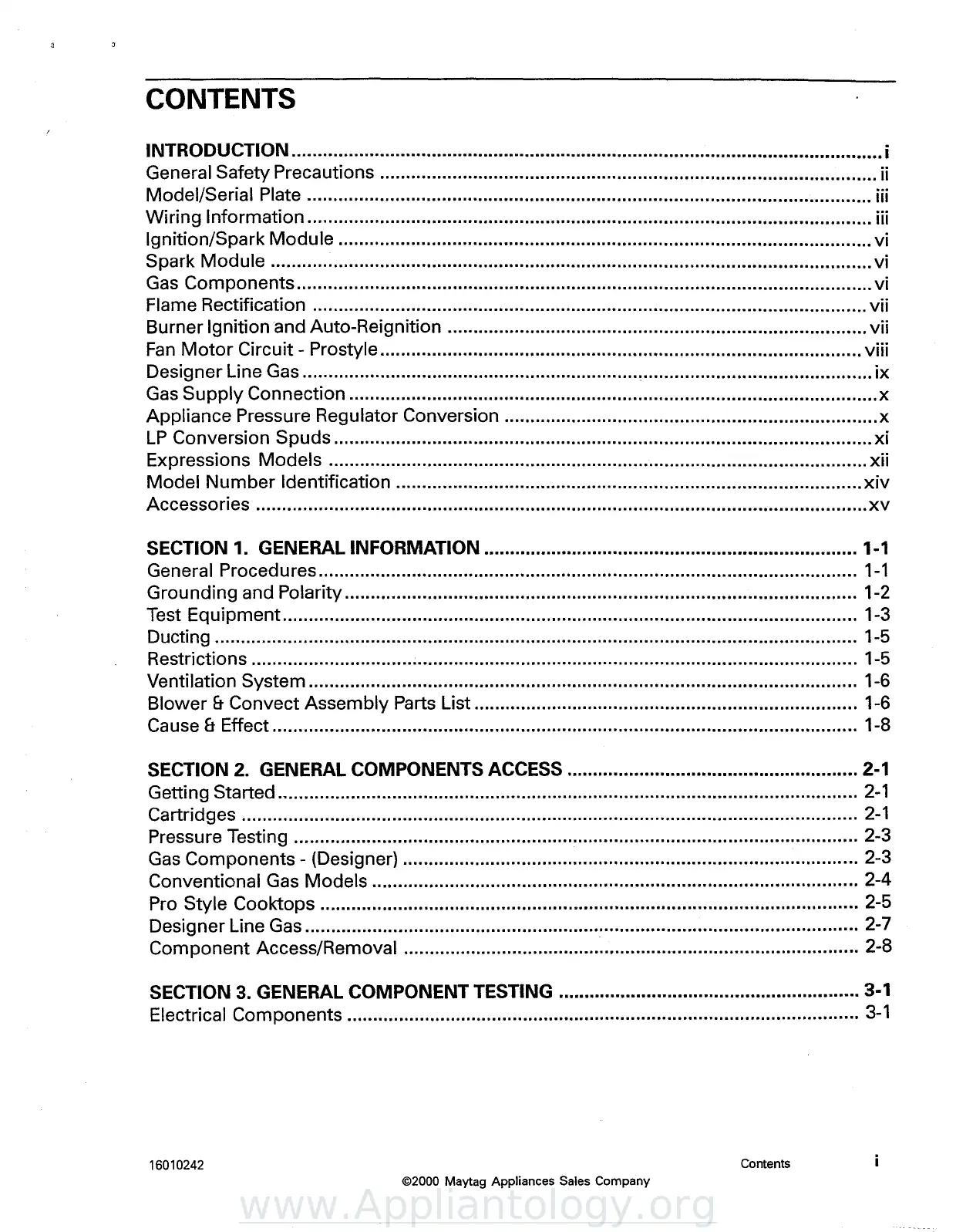 SECTION 2. GENERAL COMPONENTS ACCESS 2-1