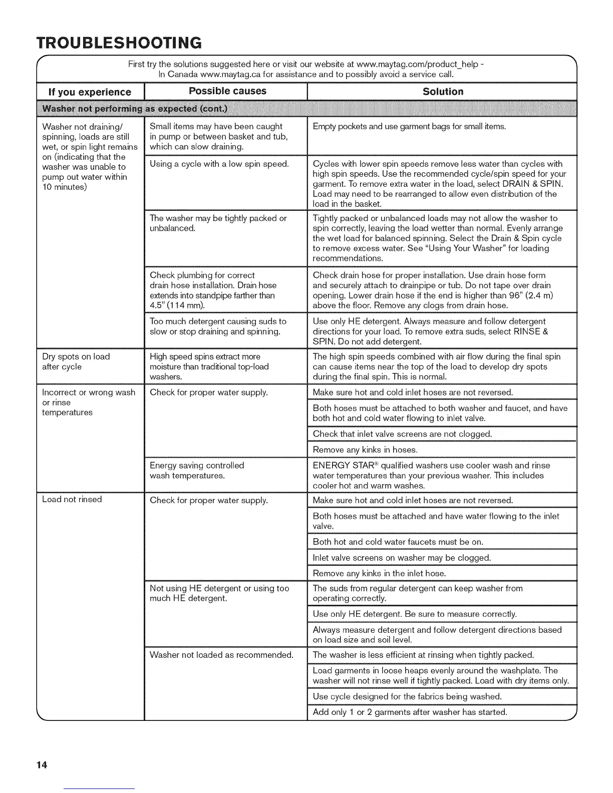 First try the solutions suggested here or visit our website at www.maytag.com/product_help -
