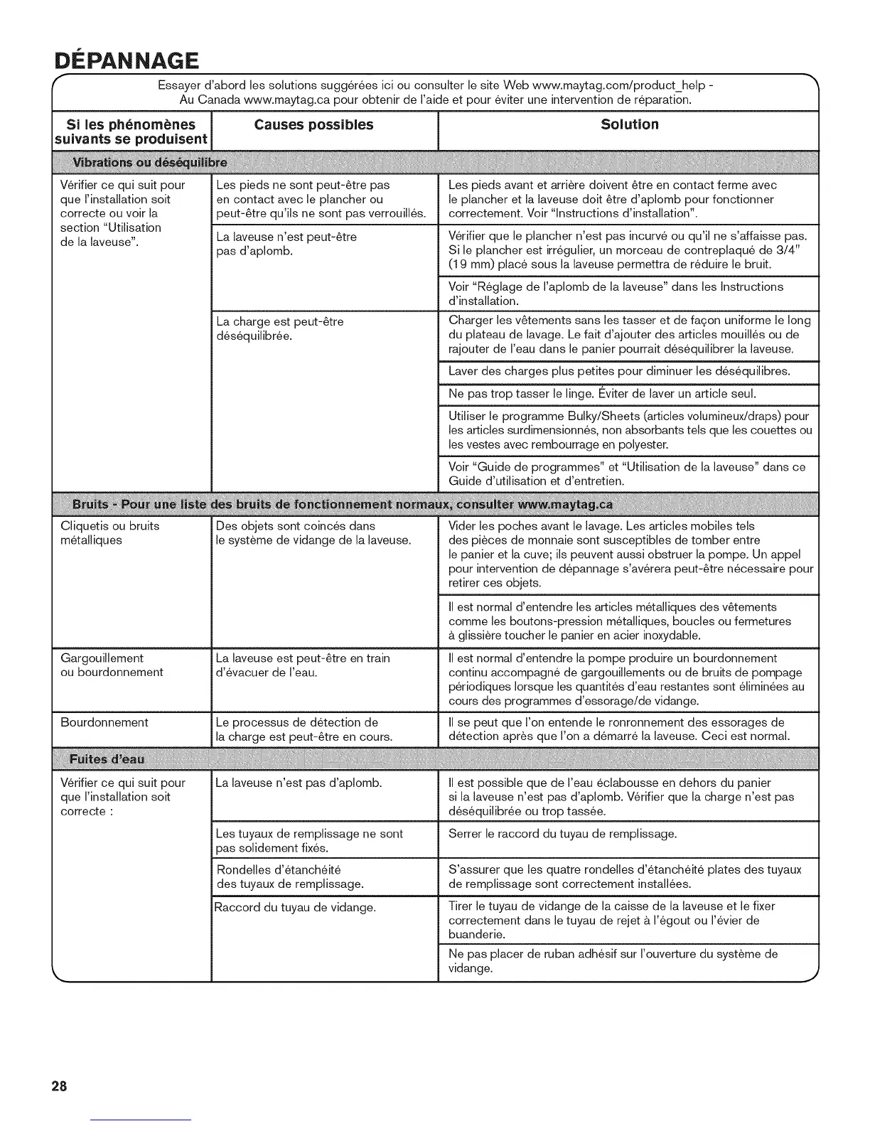 Au Canada www.maytag.ca pour obtenir de I'aide et pour eviter une intervention de reparation.