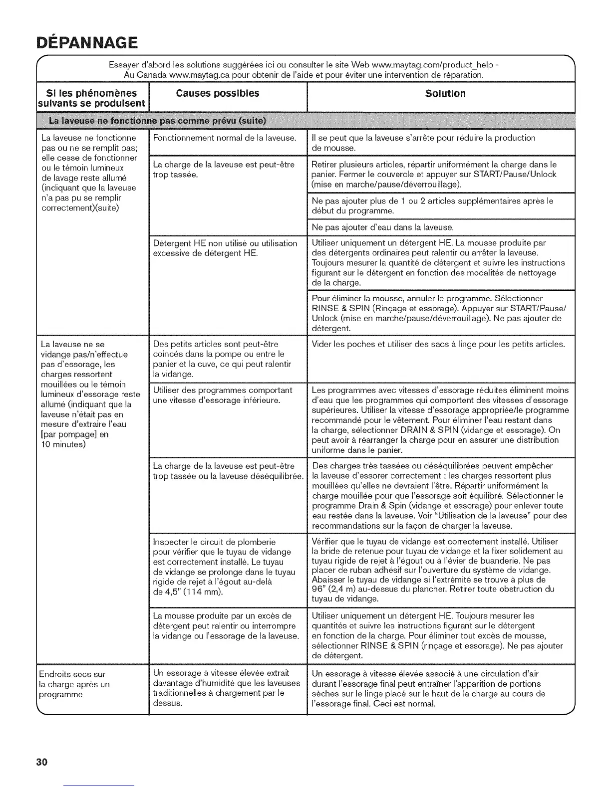 Au Canada www.maytag.ca pour obtenir de I'aide et pour 6viter une intervention de reparation.
