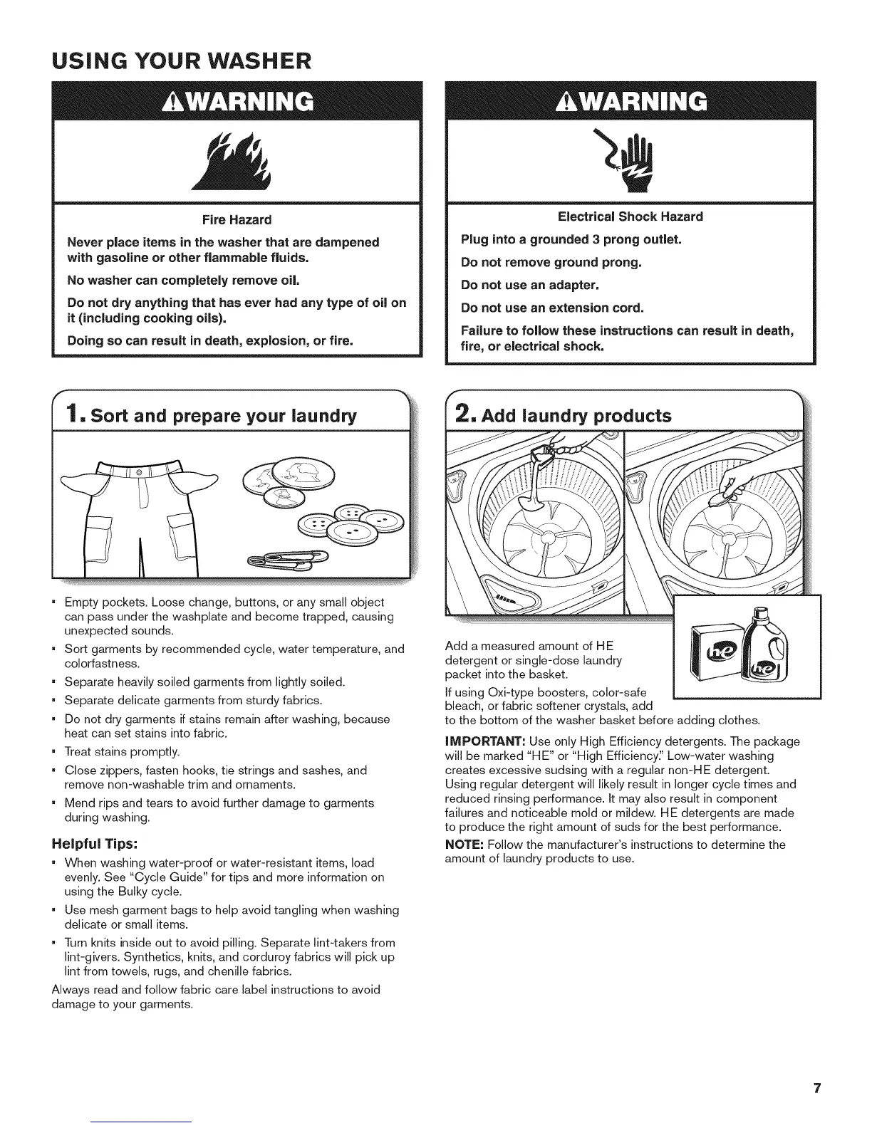 USING YOUR WASHER