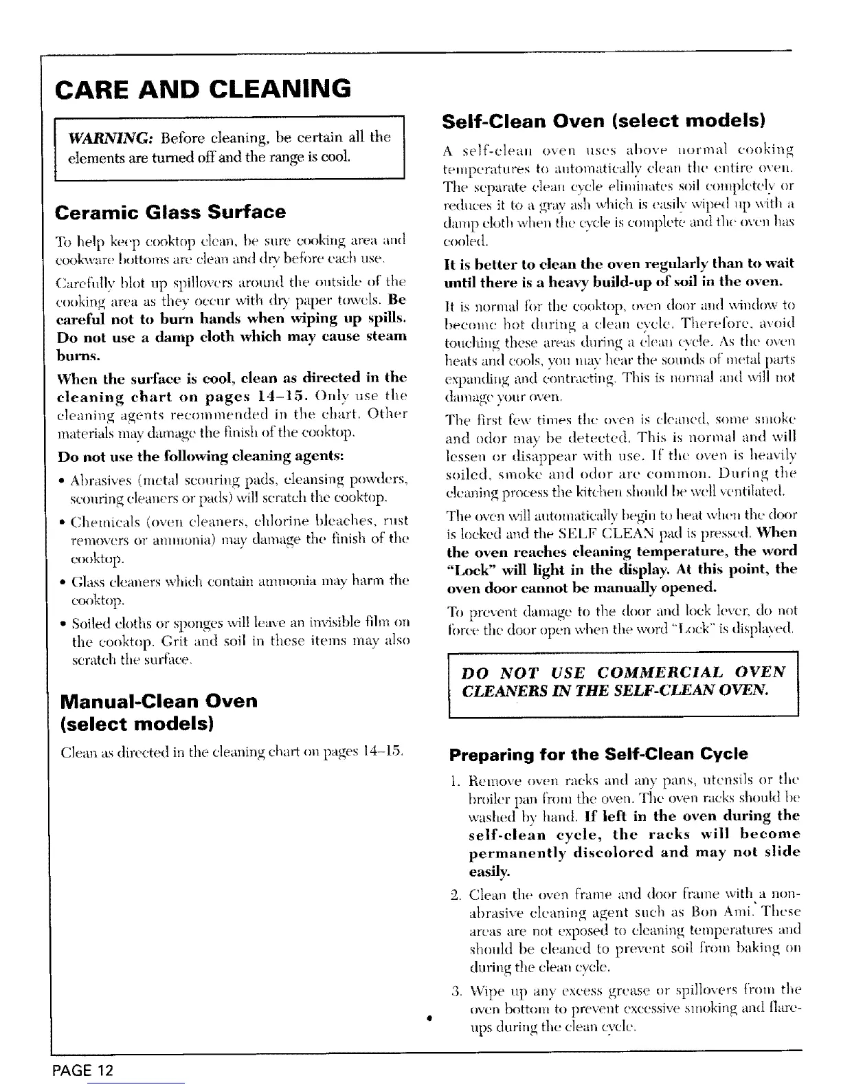 CLEANERS IN THE SELF-CLEAN OVEN.