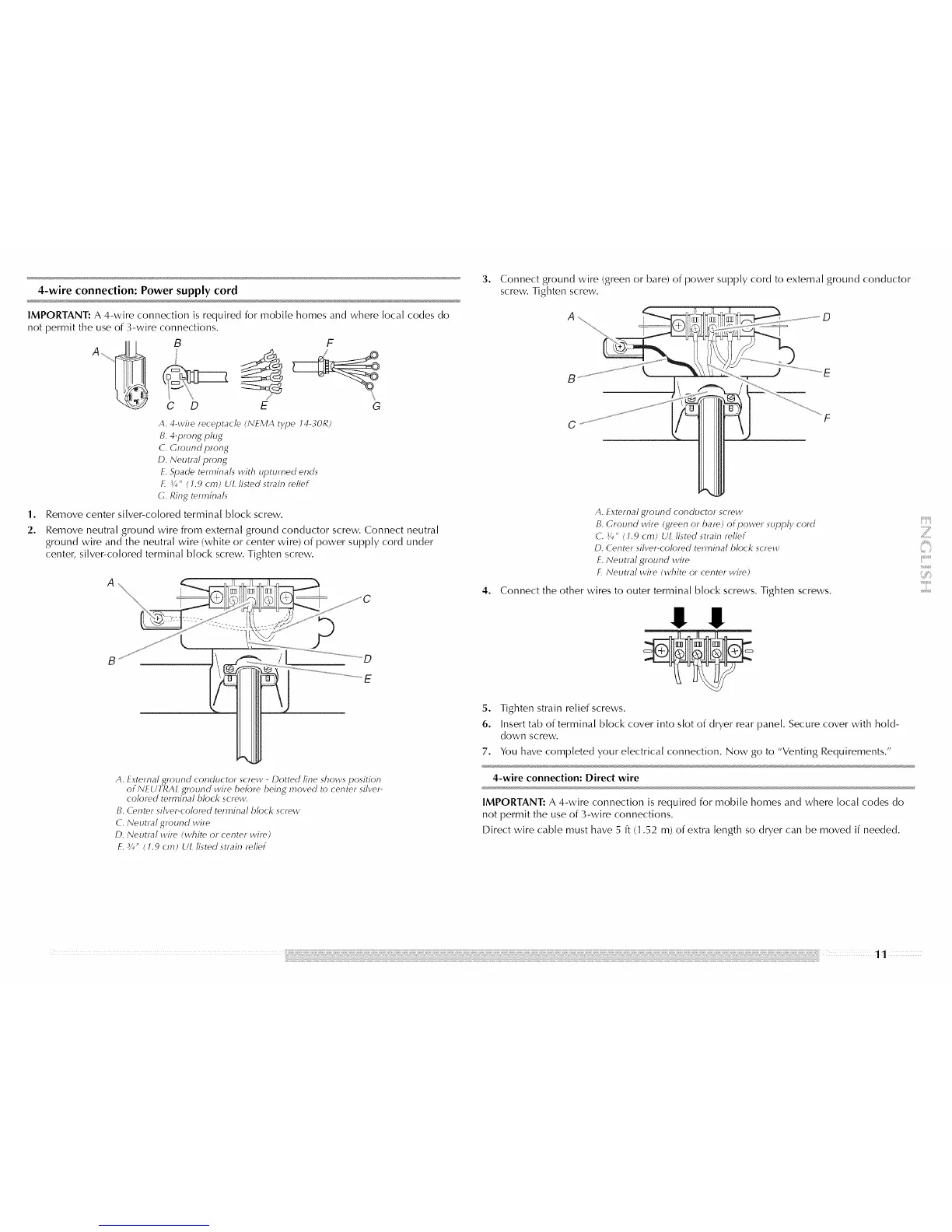 IMPORTANT: A 4-wire connection is required for mobile homes and where local codes do