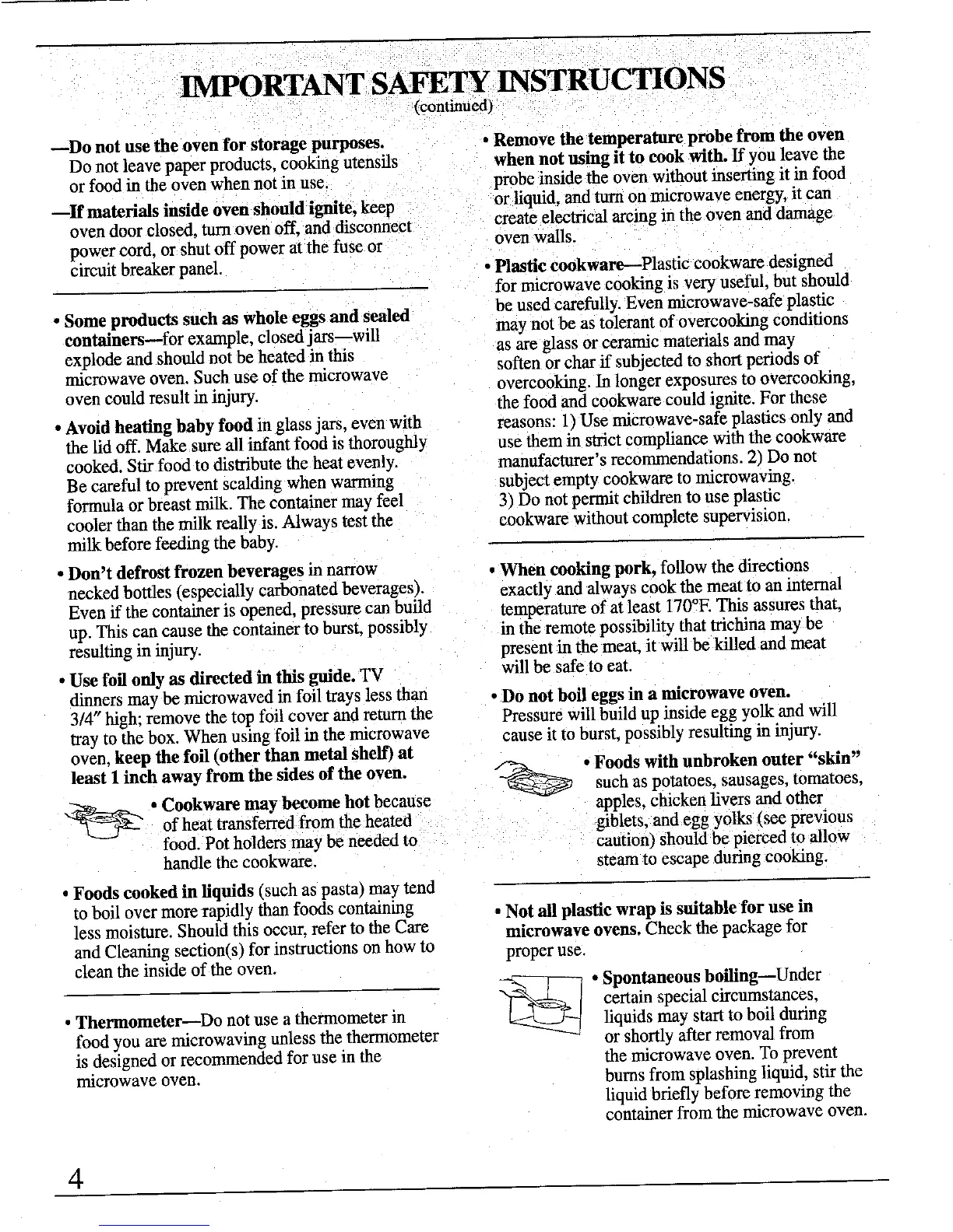 • Some products such as whole eggs and sealed be used carefully. Even microwave-safe plastic