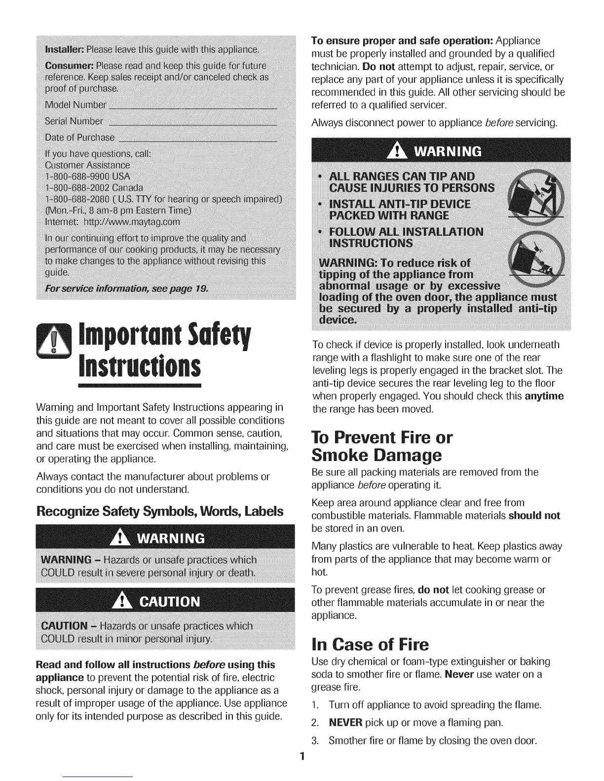 Warning and Important Safety Instructions appearing in