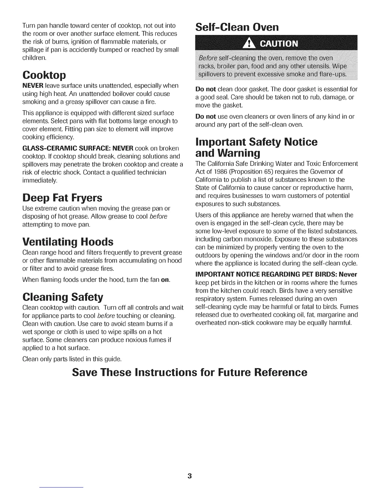 self-cleaning cycle may be harmful or fatal to birds. Fumes