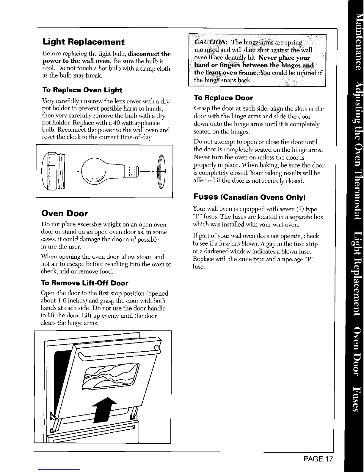 bulb. Reeonnect the power to the wall oven and seated on the hinges.
