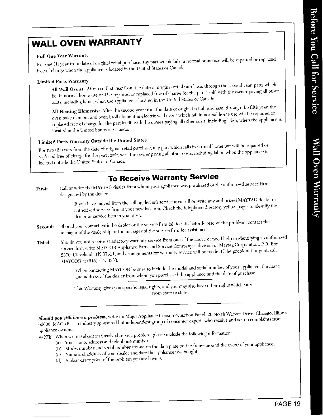 When contacting MAYCOR be sure to include the model and seTiaI mmlber of}_ur appliance, the name