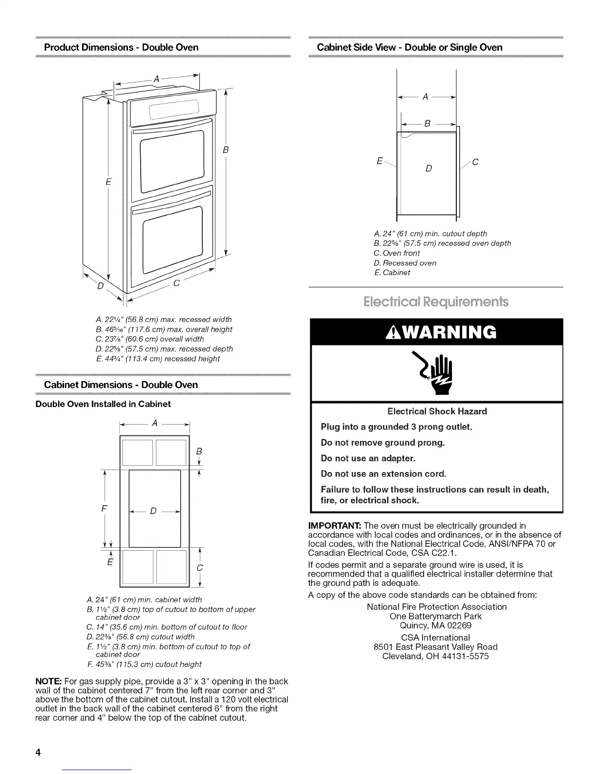 Cabinet Dimensions - Double Oven