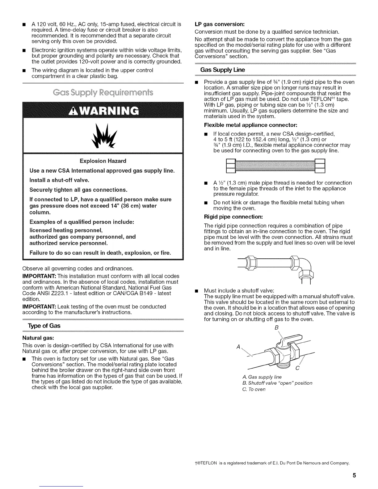 Provide a gas supply line of 3_,,(1.9 cm) rigid pipe to the oven